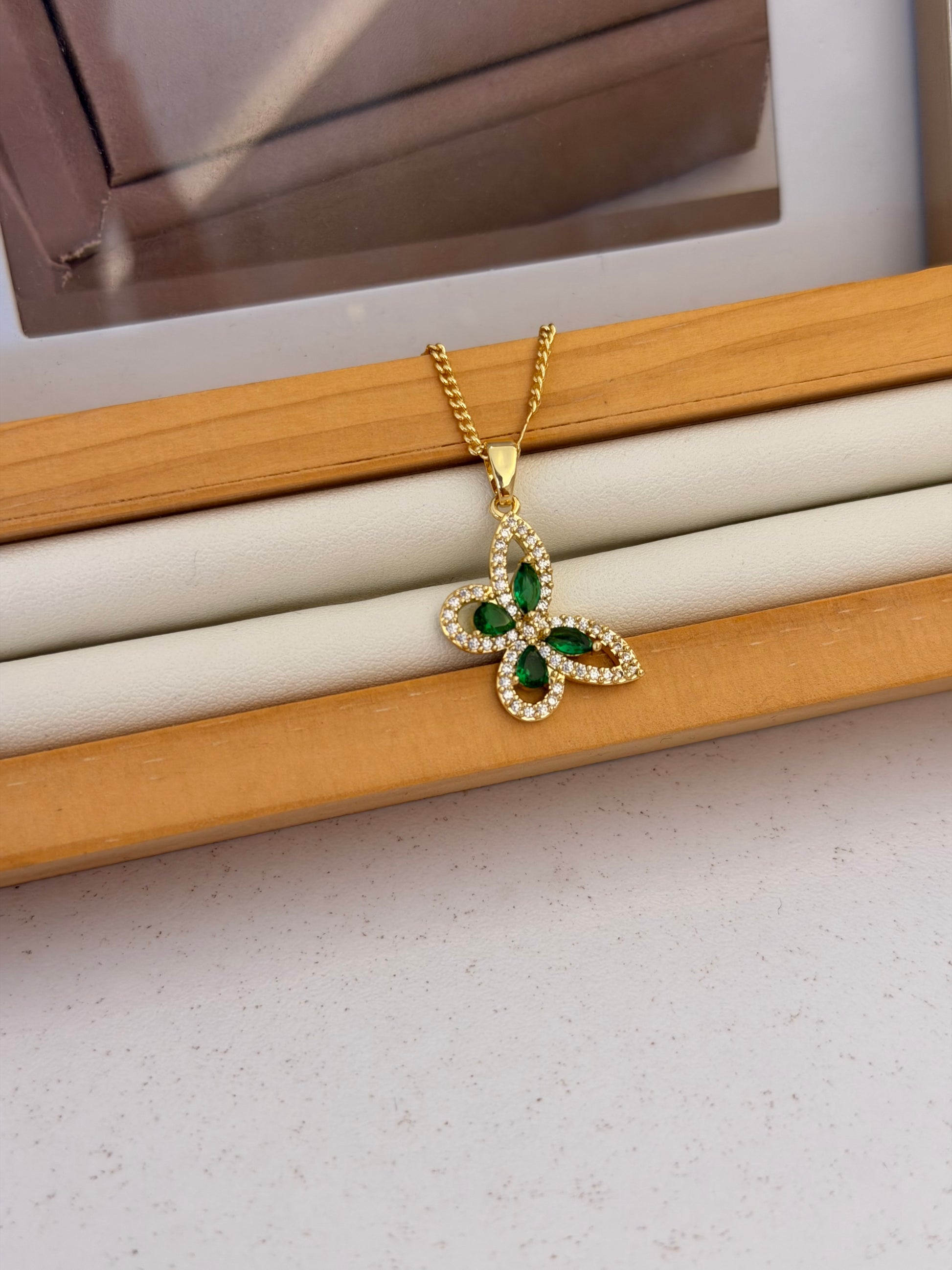 Cadena mariposa diamante verde