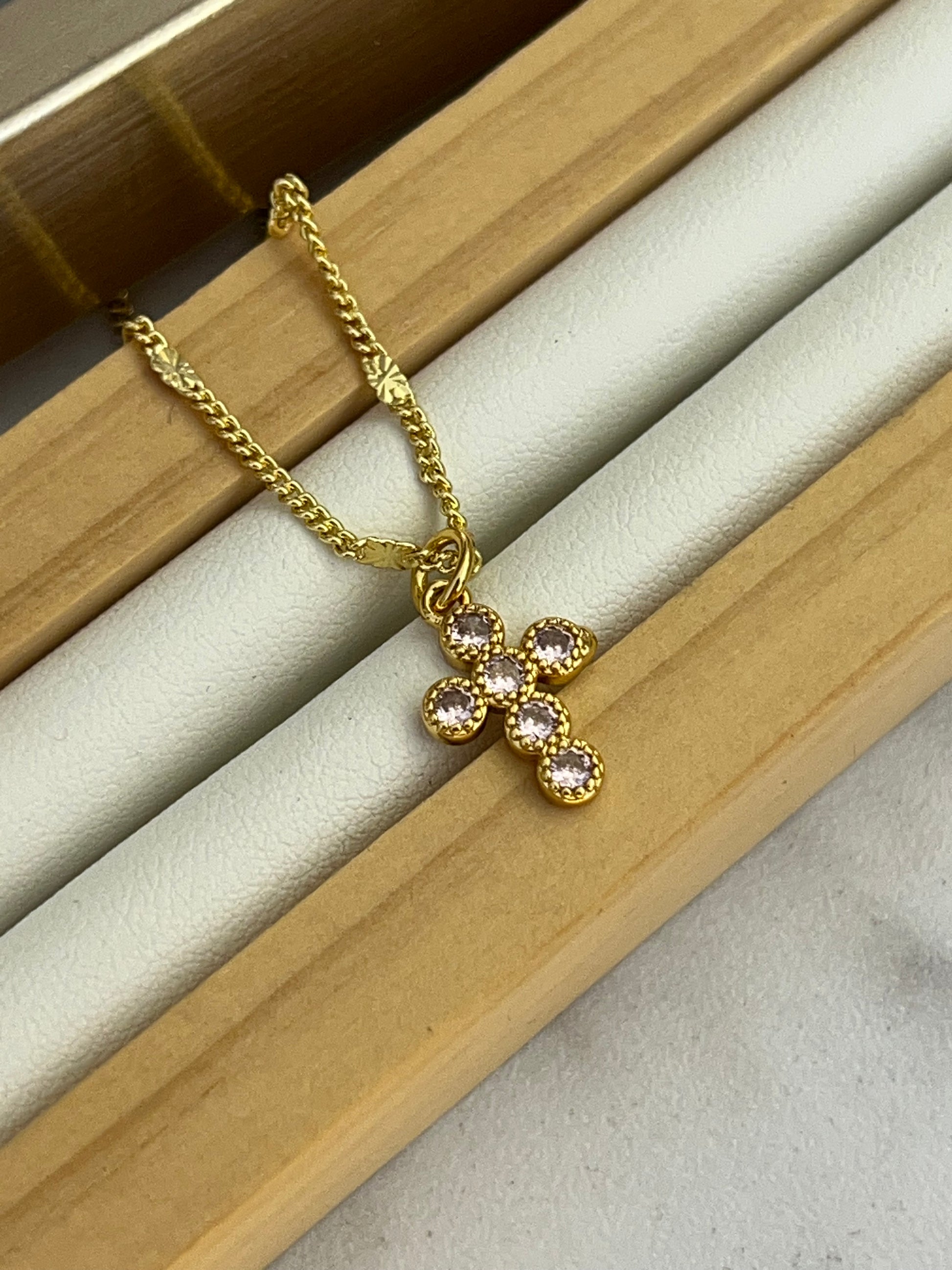 Cadena mini cruz rosada